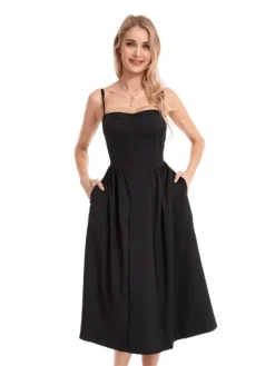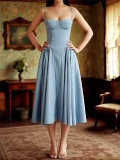 Women Spaghetti Strap Long Dress Solid Color Sleeveless Corset Flowy A-line Dress 2024 New Summer Casual Vintage Dress Sundress