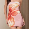 Women Long Dress Smocked Waist Pintucked Hem Side Slant Pockets V-Neck Short Sleeve Flowy Dresses