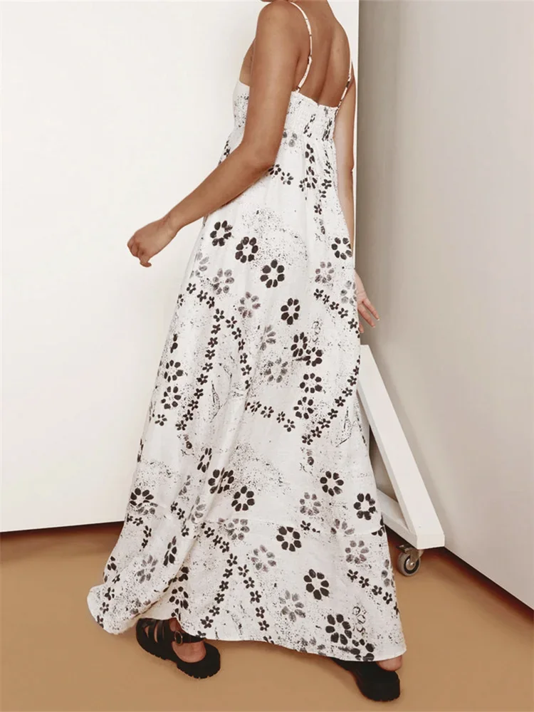 Womens Summer Long Dress Casual Floral Print Sleeveless Spaghetti Strap Beach Dress Flowy Dress